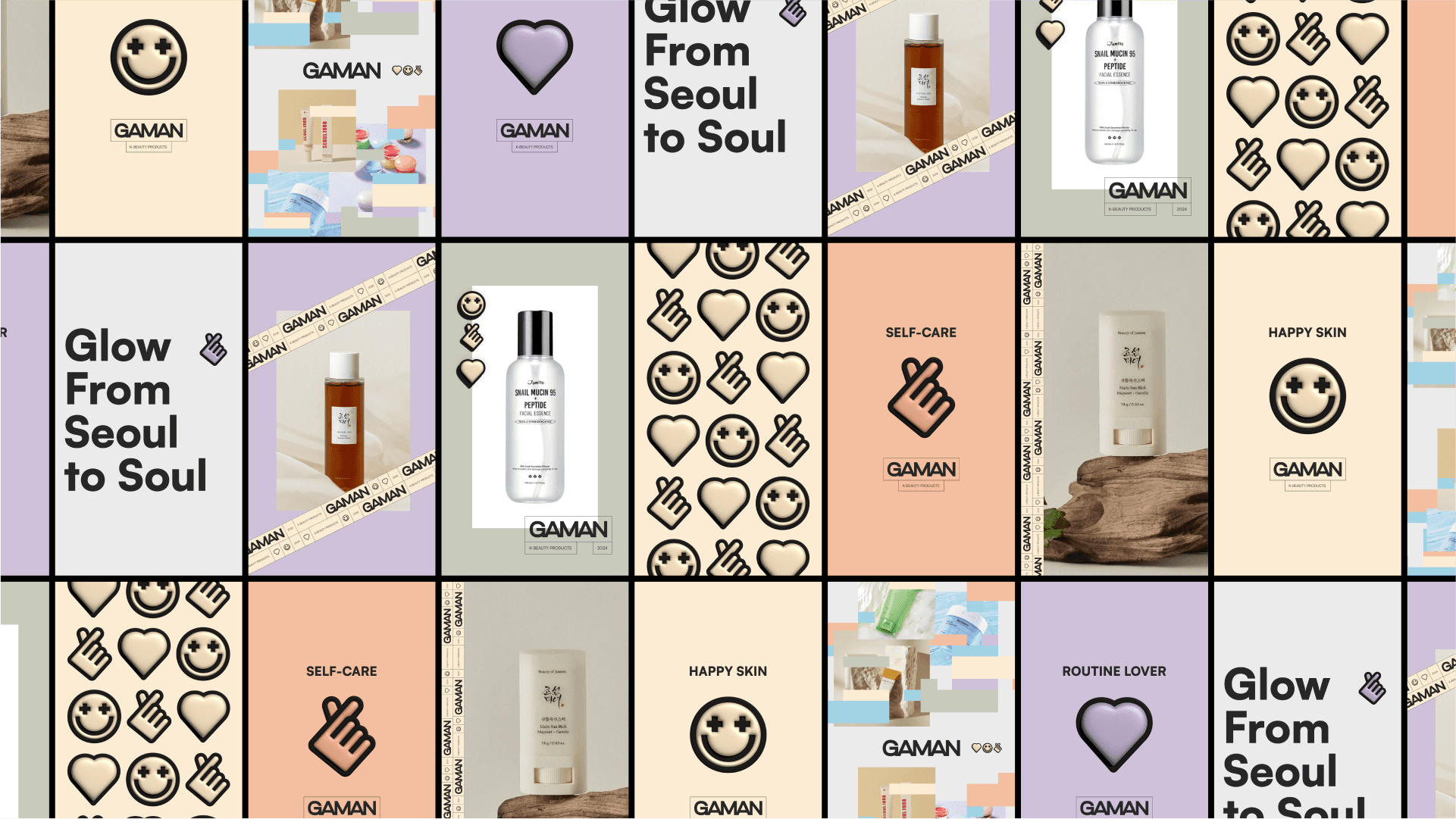 Gaman curates premium Korean skincare innovations for the Brazilian market, offering science-backed solutions for diverse skin needs. The brand combines rigorous product selection with a modern, youthful identity centered on self-care, naturality, and self-esteem.